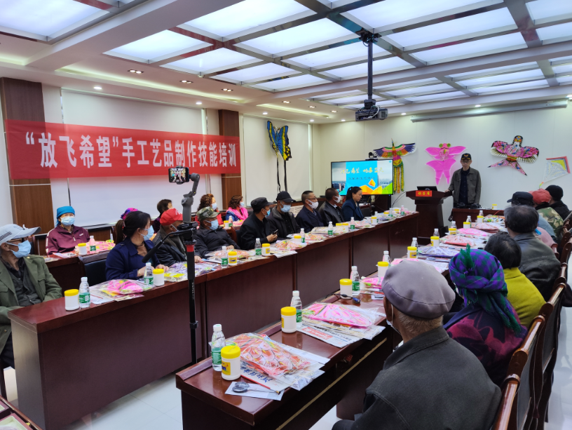 在5月15全國助殘日這一天,在饅頭營鄉會議室,希望小鎮項目組聯合張北縣殘聯、張北縣殘疾人溫馨家園組織了30多名當地留守老人、殘疾人村民開展了“放飛希望 手工藝品制作技能培訓”,本次培訓一共分為4期,首次培訓主要內容為“風箏制作”,重點針對傳統風箏及娛樂風箏制作工藝進行培訓,培訓現場邀請了中國航空學會專家、張北縣政協委員新聯會會員,剪紙、風箏制作專家樹兒灣小學“蘭學淵老師”進行了專業講解及培訓,確保每一位學員掌握風箏的制作工藝。